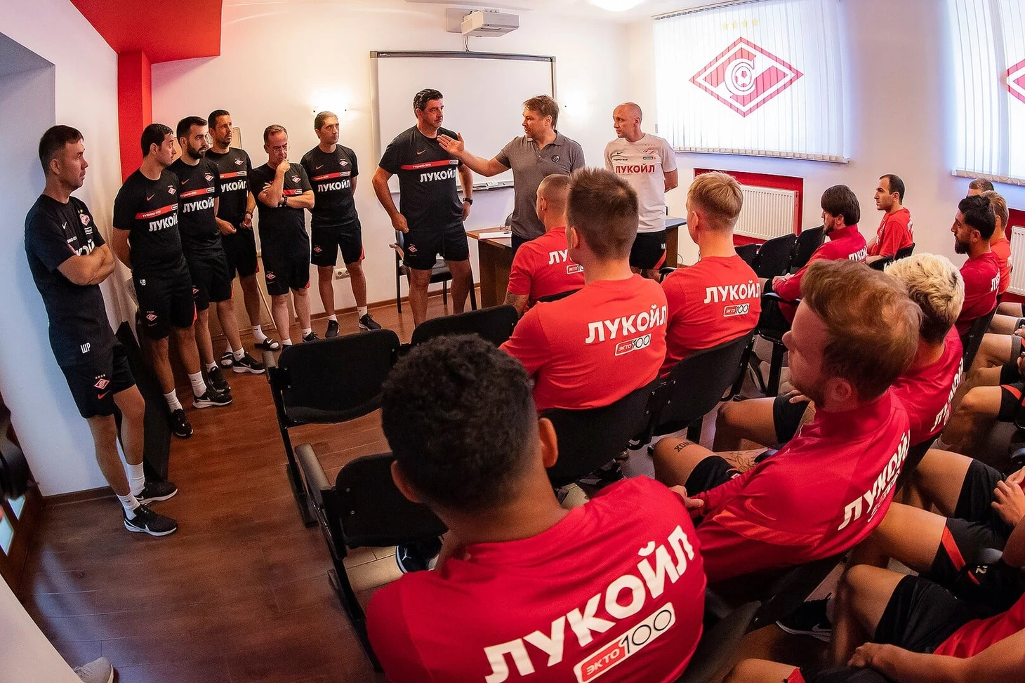 Перед занятием игроки собрались в конференц-зале, где спортивный директор Дмитрий Попов представил команде нового тренера, а Витория рассказал об основных принципах работы своего штаба.