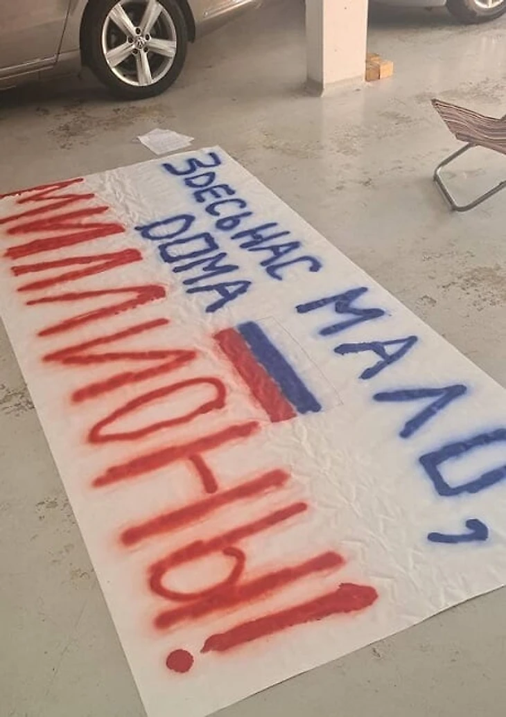 Они подготовили в поддержку российской сборной баннер, который принесут на игру: «Здесь нас мало, дома – миллионы».