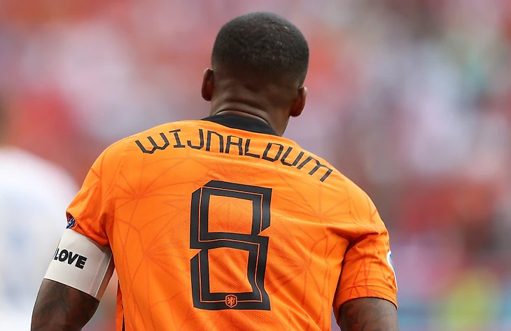 Капитан сборной Нидерландов Джорджиньо Вейналдум надел капитанскую повязку против дискриминации на матч 1/8 финала Евро-2020 с Чехией (0:0, перерыв).