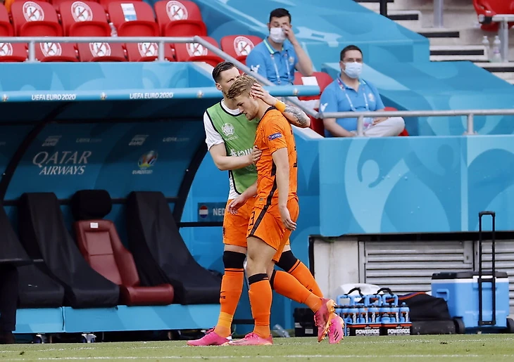 Карасев с ВАР удалил де Лигта за игру рукой в матче с Чехией. Игрок «Юве» сорвал выход Шика один на один