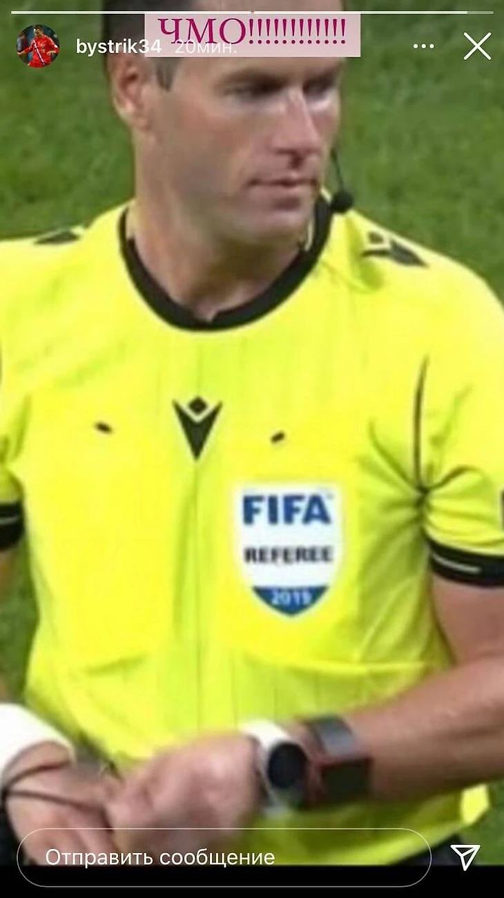 «Чмо!» – написал Быстров, выложив фотографию арбитра в сторис инстаграма.