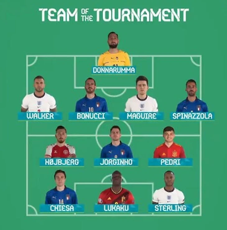 Лукаку, Стерлинг, Магуайр, Педри, Уокер, Кьеза, Хейбьерг – в сборной лучших на Евро-2020 от УЕФА