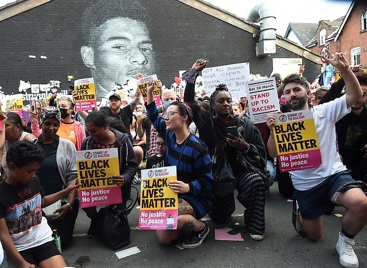Около мурала с форвардом сборной Англии и «Манчестер Юнайтед» Маркусом Рэшфордом состоялась акция протеста.