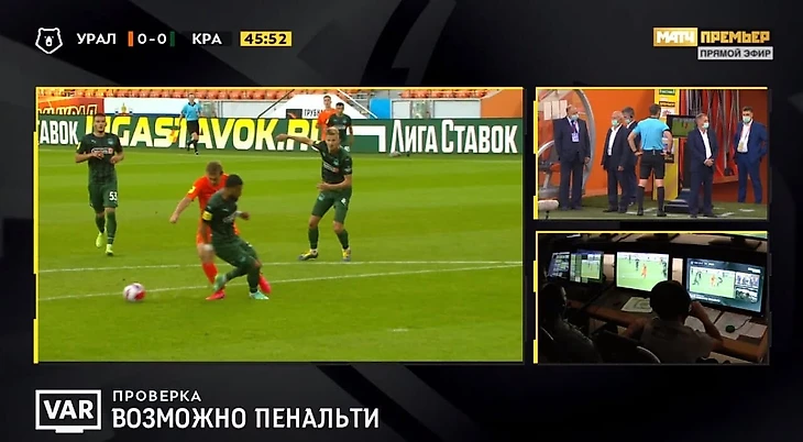 На 43-й минуте полузащитник гостей Тонни Вильена в своей штрафной сбил форварда Андрея Панюкова. Главный арбитр Василий Казарцев сперва решил не назначать пенальти, однако после консультации с видеоассистентом и самостоятельного просмотра повтора все же указал на точку.