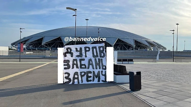 «Дуров, забань Зарему». Баннер у стадиона перед матчем «Спартака» с «Крыльями»