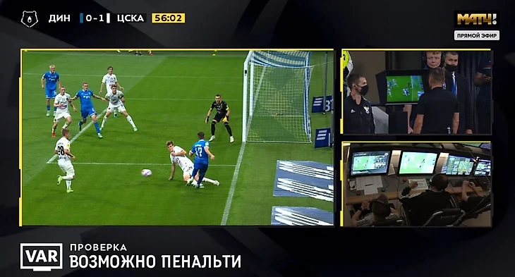 Главный арбитр Владислав Безбородов, посмотрев видеоповтор, принял решение назначить пенальти, который реализовал хавбек Даниил Фомин.