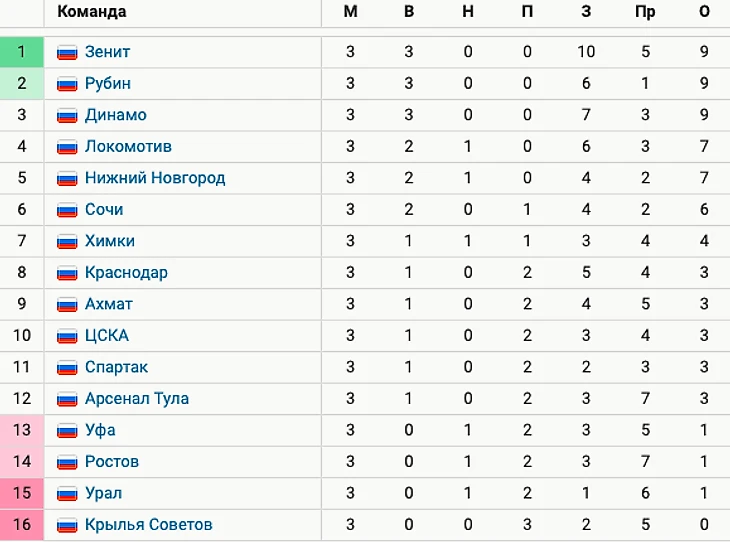 У «Краснодара», «Ахмата» и ЦСКА тоже по 3 очка, но они идут на 8-м, 9-м и 10-м местах соответственно за счет дополнительных показателей.