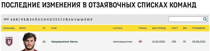 «Хвича Кварацхелия из-за повреждения временно убран из заявки «Рубина» РПЛ.