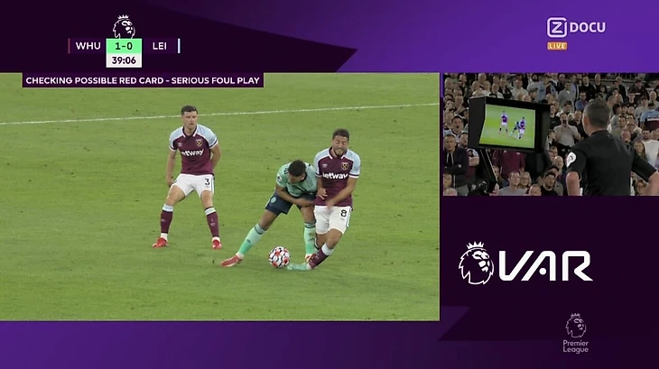 Хавбек «Лестера» Перес удален за грубый фол на Форнальсе. Оливер не заметил нарушения, помог ВАР
