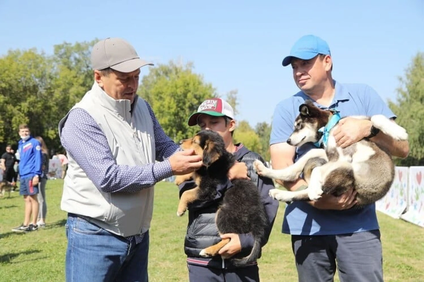 Мэр Казани Ильсур Метшин и тренер «Рубина» Леонид Слуцкий выбрали себе по собаке из приюта на благотворительной акции «Дай лапу».