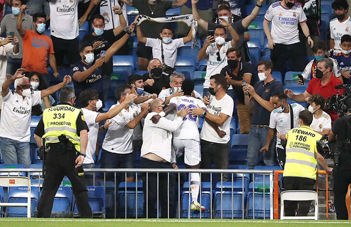 21-летний бразилец отпраздновал гол с болельщиками на «Сантьяго Бернабеу» – это первый матч на домашней арене «сливочных» после реконструкции.