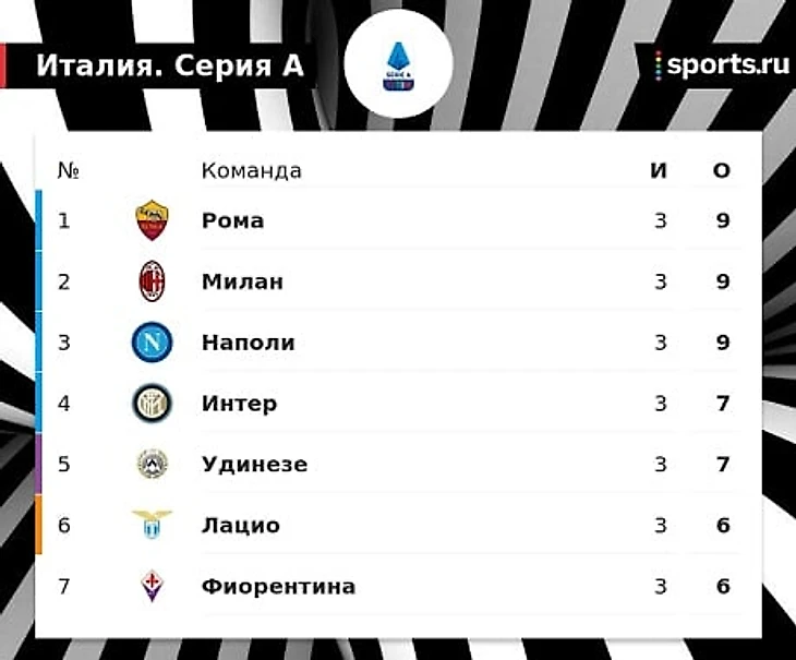 Команда тренера Жозе Моуринью начала сезон с трех подряд побед в Серии А с общим счетом 9:2. До этого «Рома» переиграла «Фиорентину» (3:1) и «Салернитану» (4:0).