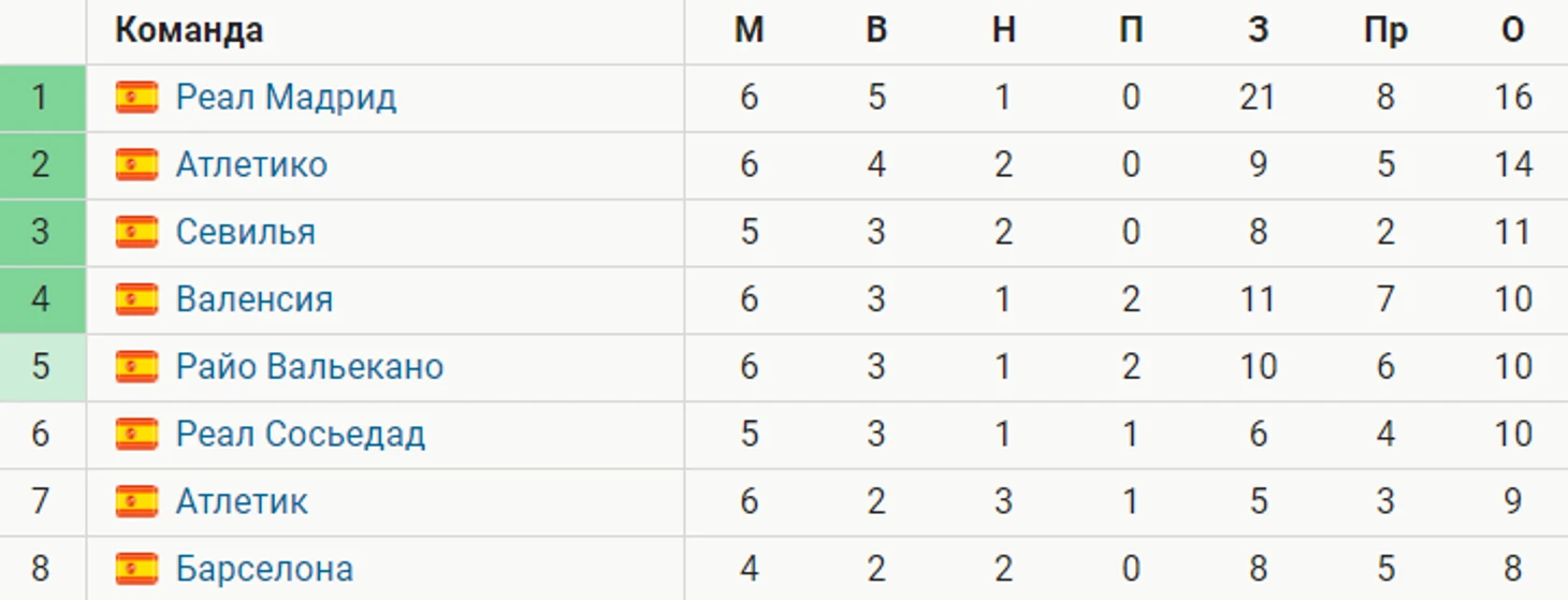 После 6 туров чемпионата Испании мадридцы с 16 очками лидируют в таблице. 25 сентября они примут «Вильярреал».