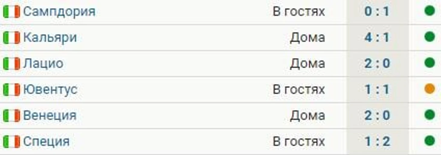Это пятая подопечных Стефано Пиоли в этом розыгрыше чемпионата при одной ничьей.