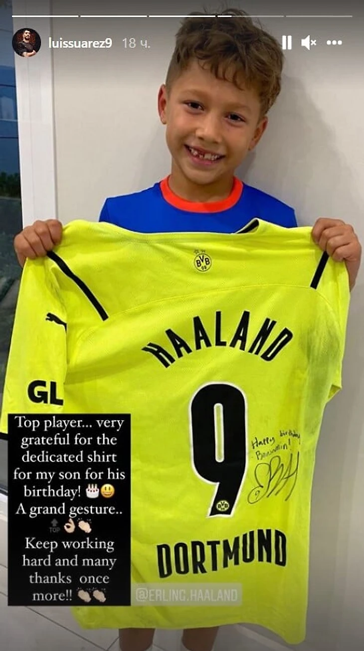 Холанд подарил сыну Суареса футболку с автографом на день рождения