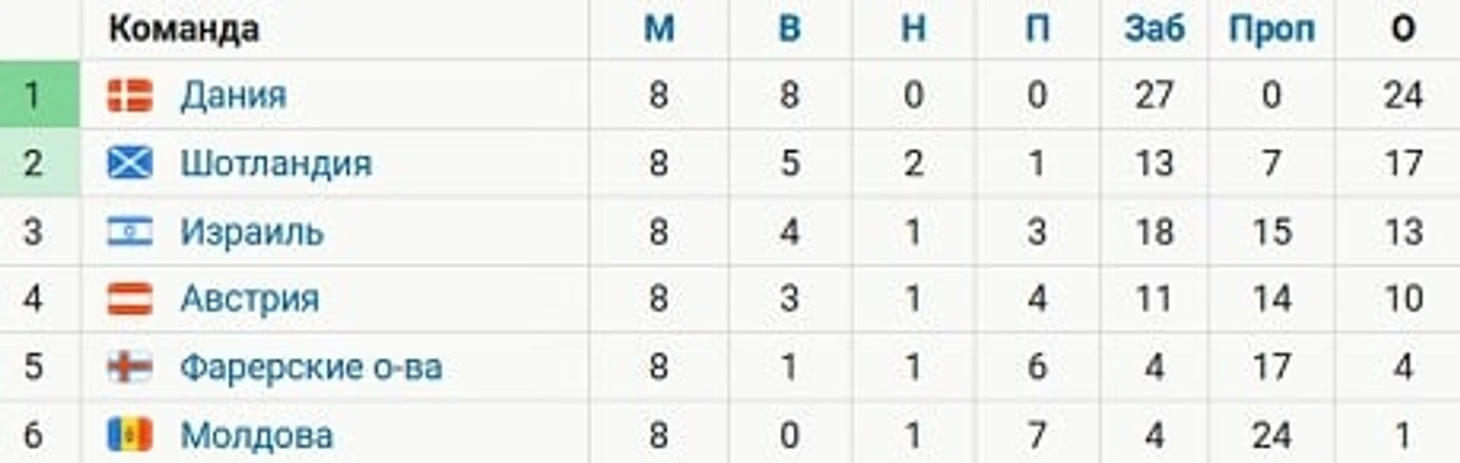 Благодаря этой победе датчане заняли первое место в группе и обеспечили себе участие на чемпионате мира в Катаре.
