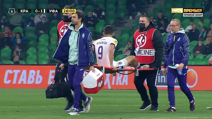 Агаларов травмировал бедро в матче с «Краснодаром». Форварда «Уфы» несли на носилках