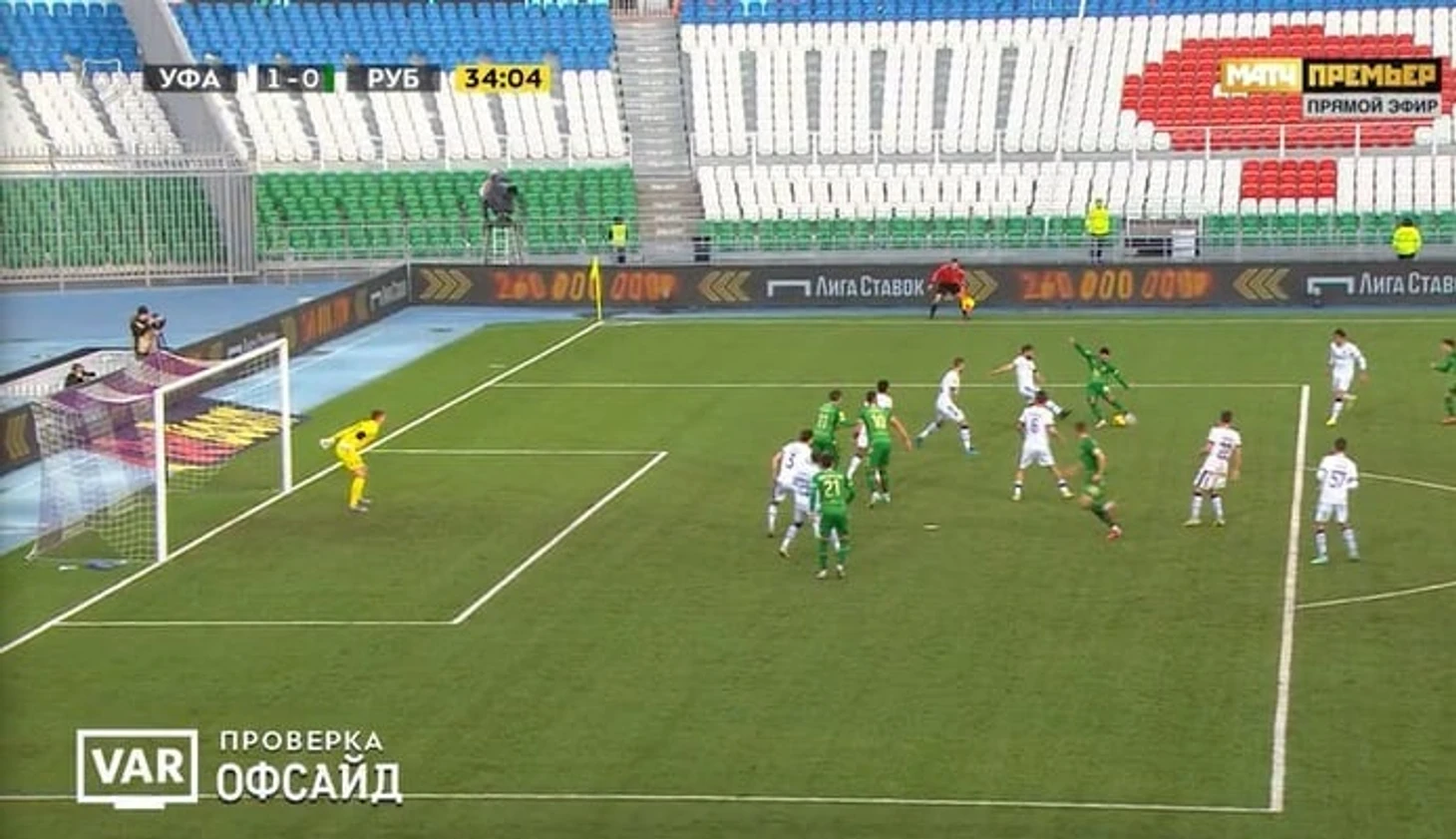 Гол «Рубина» в ворота «Уфы» отменен после ВАР из-за офсайда