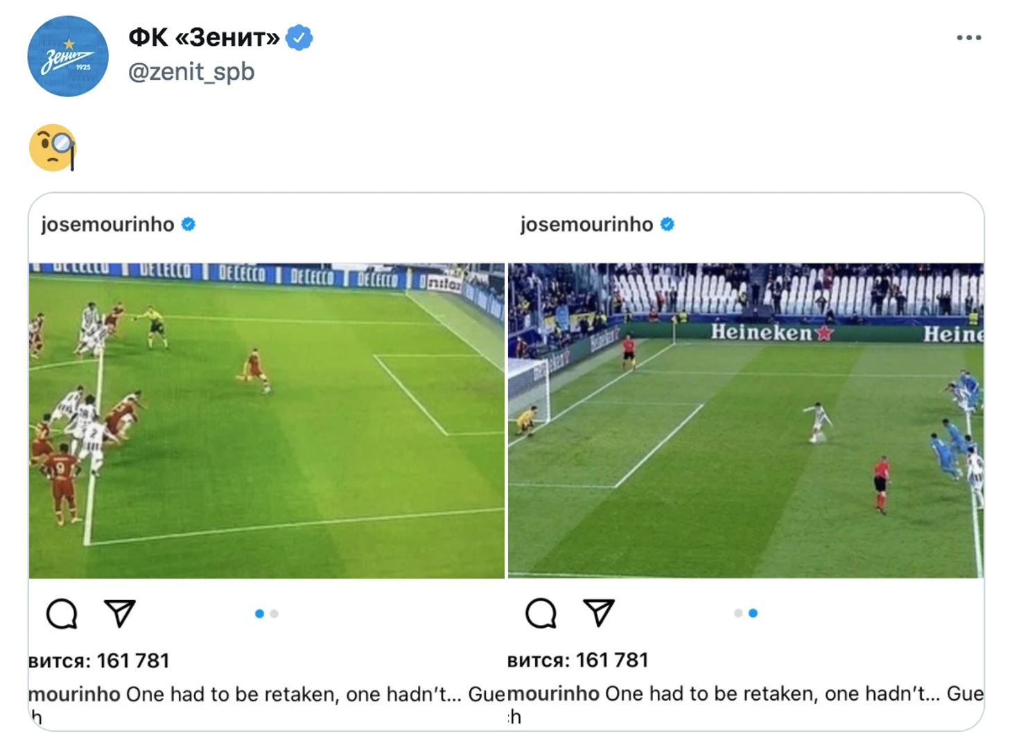 «Зенит» о посте Моуринью про пенальти «Ювентуса»: «🧐»