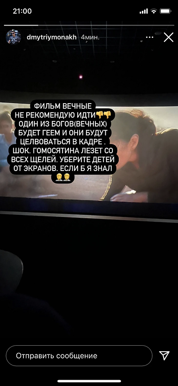 «Фильм «Вечные» – не рекомендую идти. Один из богов – «вечных» – будет геем, и они будут целоваться в кадре.