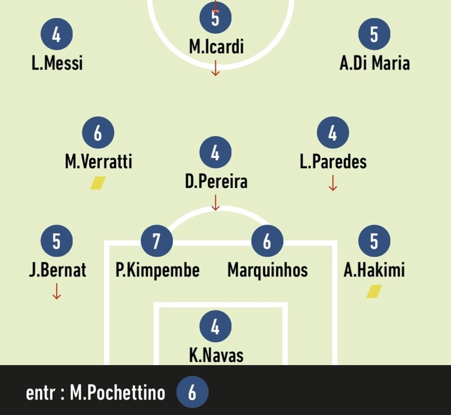 6 баллов получил полузащитник Марко Верратти, по 5 баллов – нападающий Мауро Икарди и хавбек Анхель Ди Мария.