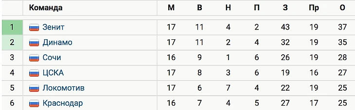 Московская команда занимает второе место в турнирной таблице, набрав 35 очков в 17 играх.
