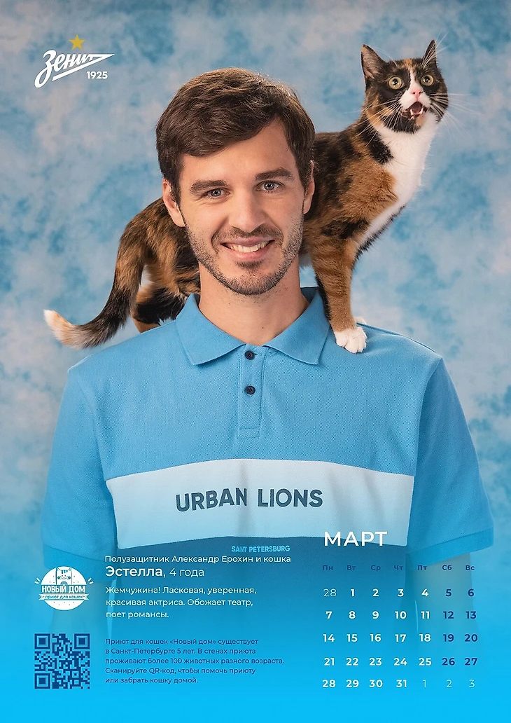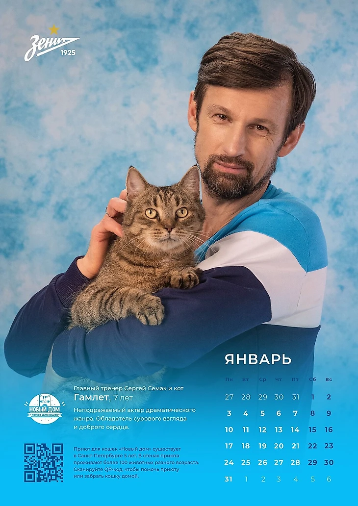 «Зенит» представил календарь с котами на 2022 год. Семак и игроки сфотографировались с животными из приюта