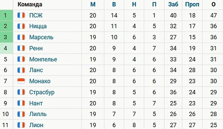 «ПСЖ» уверенно лидирует в таблице с отрывом в 11 очков от второго места. «Лион» под руководством тренера Петера Боса, имея 25 балов, идет 11-м.