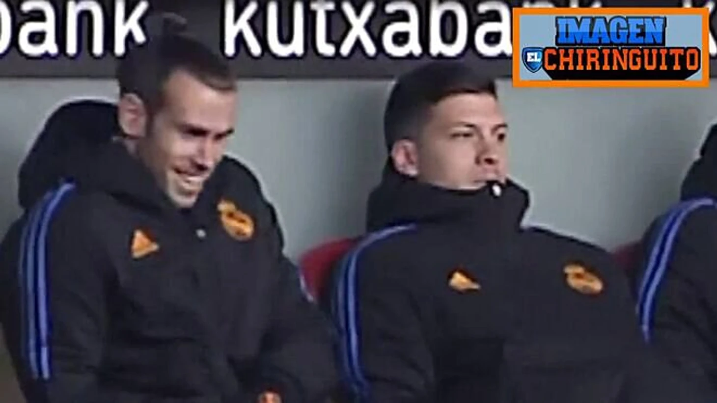Камеры El Chiringuito поймали кадр, где видно, как валлиец смеется, когда Эден Азар возвращается на скамейку запасных после разминки.