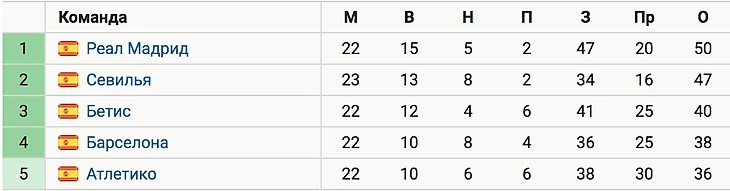 Сине-гранатовые обогнали мадридцев, набрав 38 очков, и вышли на четвертое место.