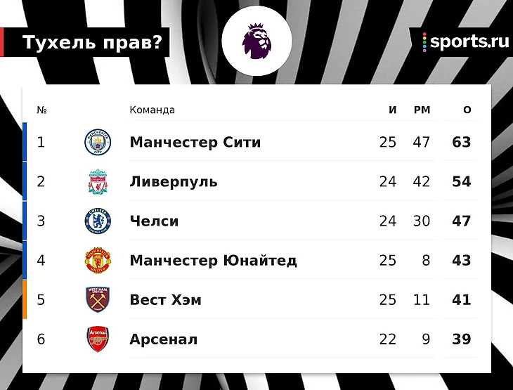 • Томас Тухель: «Челси» не должен думать о победе в АПЛ, сейчас мы боремся за топ-4. Нужно быть реалистами»