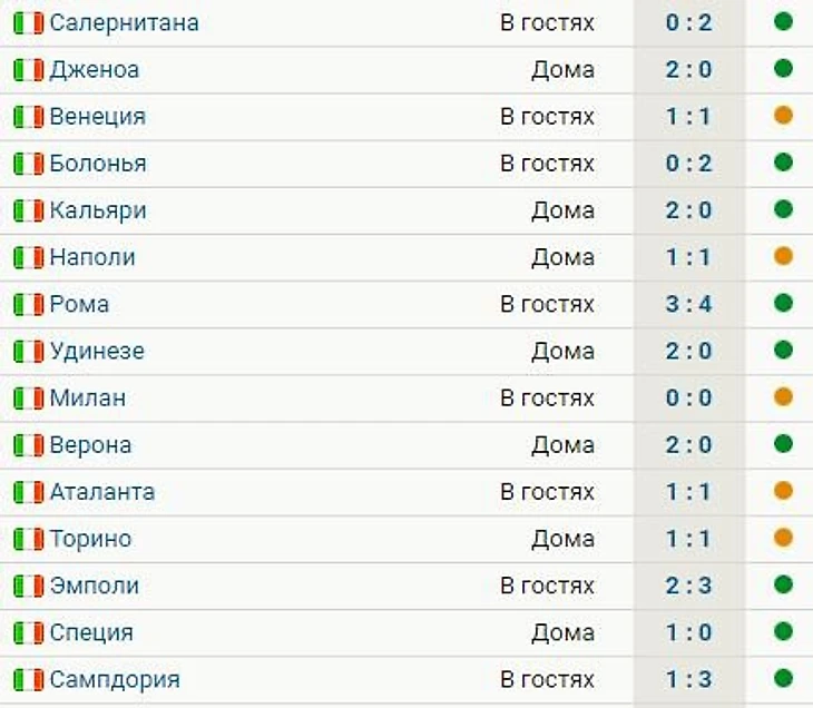 С тех пор «бьянконери» одержали 10 побед и 5 раз сыграли вничью.