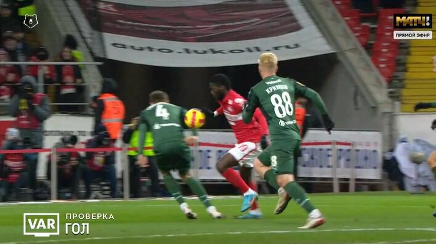 Судья отменил два гола «Спартака» в матче с «Краснодаром».