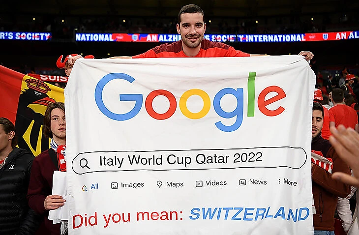 Баннер с запросом в Google «Италия ЧМ Катар 2022» и припиской «Вы имели в виду Швейцарию?» показал фанат на игре с Англией