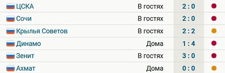 В шести последних матчах РПЛ команда тренера Миодрага Божовича потерпела 4 поражения и дважды поделила очки.