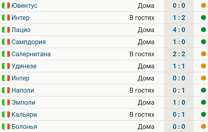 В последний раз команда Стефано Пиоли уступала 17 января – «Специи» (1:2). С тех пор у нее 6 побед и 5 ничьих.
