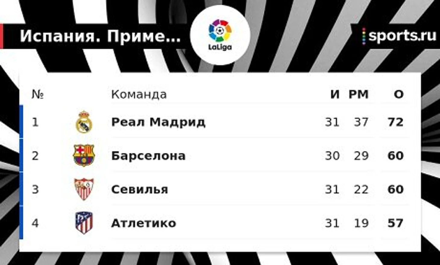 «Барса» отстает от «Реала» на 12 очков при матче в запасе.