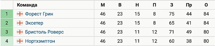 «Бристоль» и «Нортхэмптон» завершили сезон с одинаковым количеством очков и одинаковой разницей мячей, однако «Бристоль» опередил соперника благодаря большему количеству забитых мячей.
