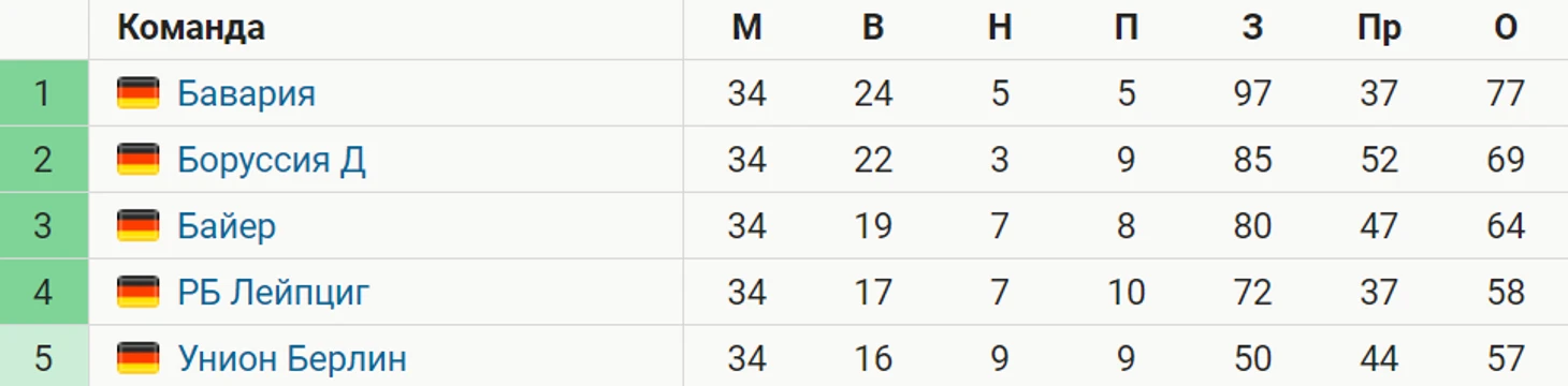 Также право выступить в ЛЧ получили «Байер» (64 очка), «Боруссия» Дортмунд (69) и «Бавария» (77).