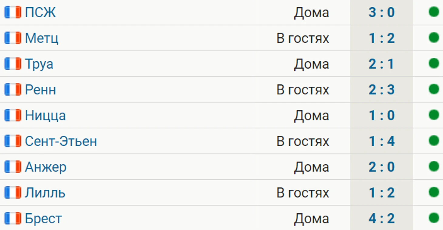 Команда Филиппа Клемана одержала девятую победу подряд – над «Брестом» (4:2). Сейчас у нее лучшая серия результатов среди участников топ-5 лиг Европы.