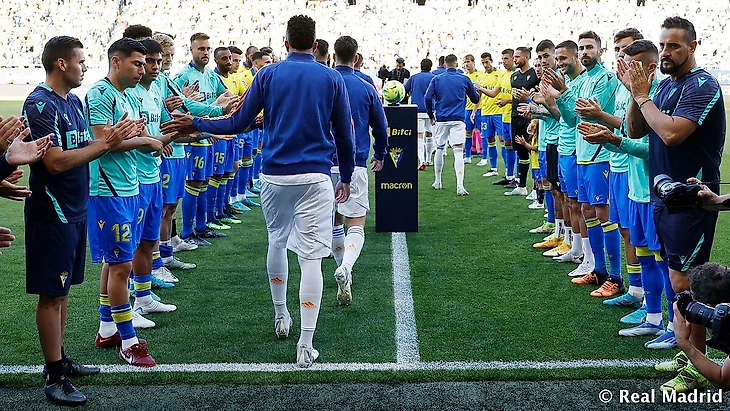 Футболисты «Кадиса» организовали чемпионский коридор для игроков мадридского клуба перед стартом матча 37-го тура, который завершился со счетом 1:1.
