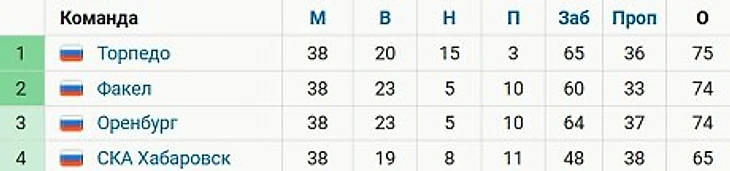 Отметим, что «Торпедо» оказалось бы в стыках, если бы проиграло сегодня. Тогда у трех команд было бы по 74 очка, и в таком случае первым дополнительным показателем были бы победы в сезоне ФНЛ – у «Торпедо» их меньше, чем у конкурентов.