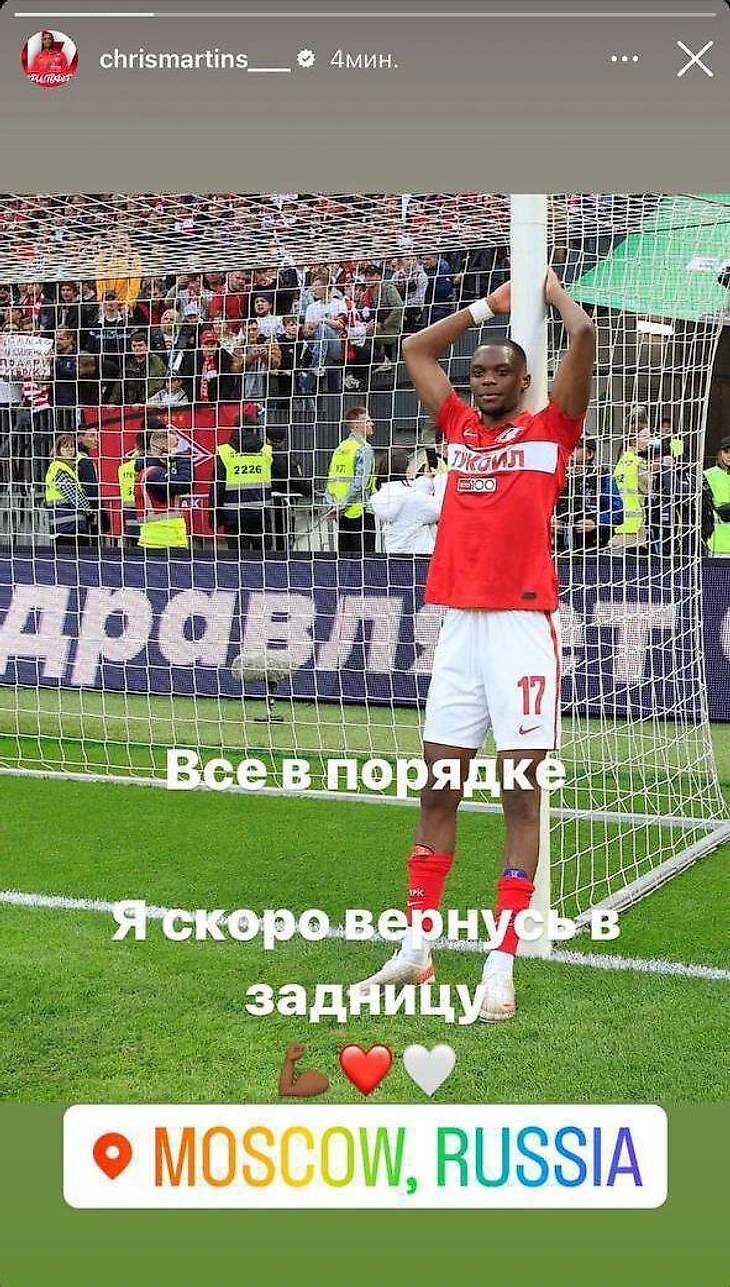 Полузащитник «Спартака» Кристофер Мартинс курьезно ошибся в соцсетях.
