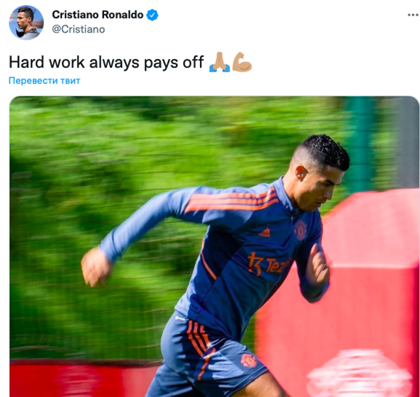 Роналду выложил фото с тренировки «МЮ»: «Тяжелая работа всегда приносит плоды»