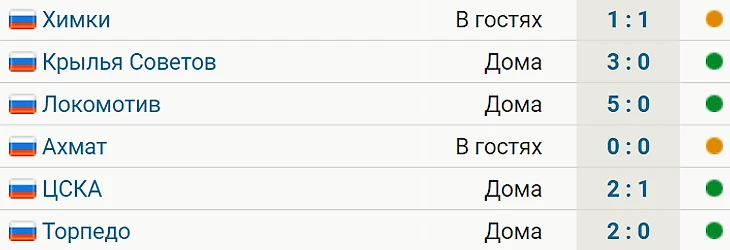 Команда Сергея Семака обыграла «Торпедо» (2:0) в 6-м туре Мир РПЛ. Ранее она победила «Крылья Советов» (3:0), «Локомотив» (5:0) и ЦСКА (2:1), а также сыграла вничью с «Химками» (1:1) и «Ахматом» (0:0).