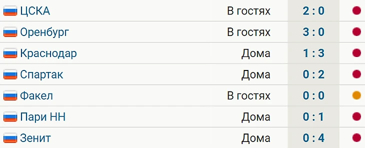 Клуб потерпел поражение в 6 из 7 матчей чемпионата, ничья – с «Факелом» (0:0). Единственный гол за семь туров был забит «Краснодару» (1:3) 29 июля.
