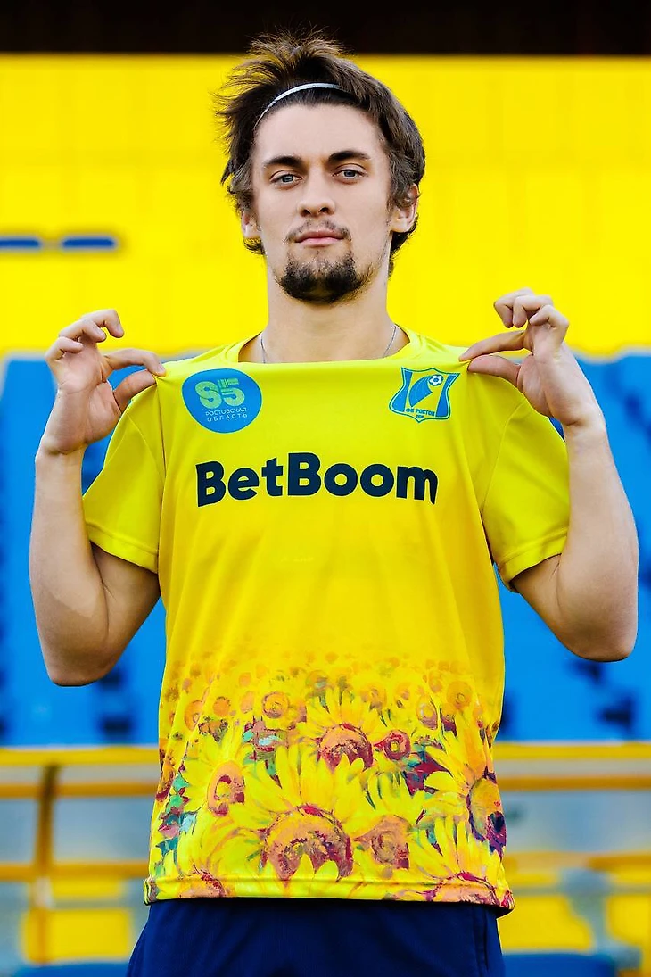 На нижней части футболок, выполненных в традиционном для «Ростова» желтом цвете, нанесен принт с подсолнухами – одним из символов региона.