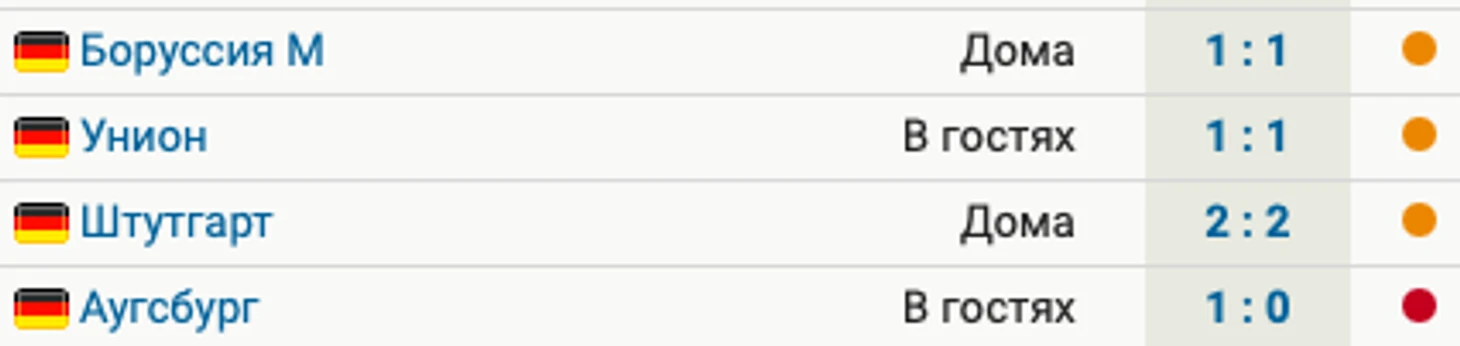 До этого было три ничьих в Бундеслиге – со «Штутгартом», «Унионом» и гладбахской «Боруссией».