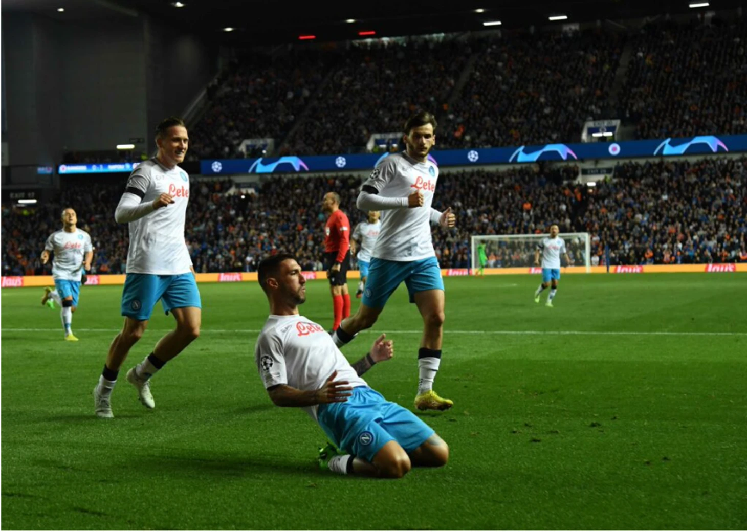 Во втором туре команда Спаллетти прошлась катком еще по одной британской команде — на этот раз на его поле был повержен шотландский «Рейнджерс» — 3:0. Эта встреча складывалась для итальянцев сложнее, до 68-й минуты сохранялся ничейный счет, но многое предопределило удаление в составе хозяев американца Джеймса Сэндса. У «Наполи» сначала пенальти реализовал Маттео Политано, а в последние пять минут встречи гости добили соперника голами Джакомо Распадори и Танги Ндомбеле.