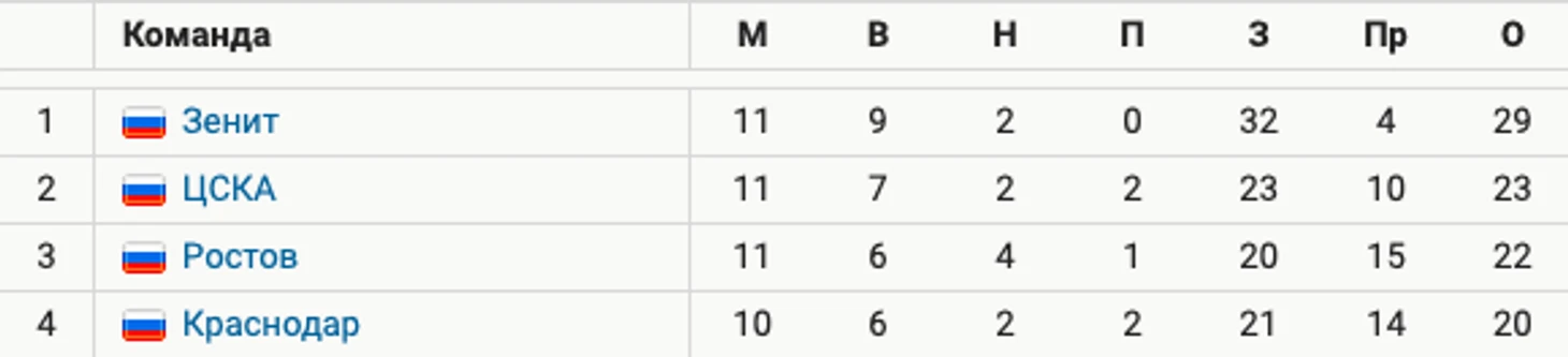 По итогам прошлого тура «Ростов» был вторым и отставал на 4 балла. Теперь команда тренера Валерия Карпина опустилась на 3-е место.